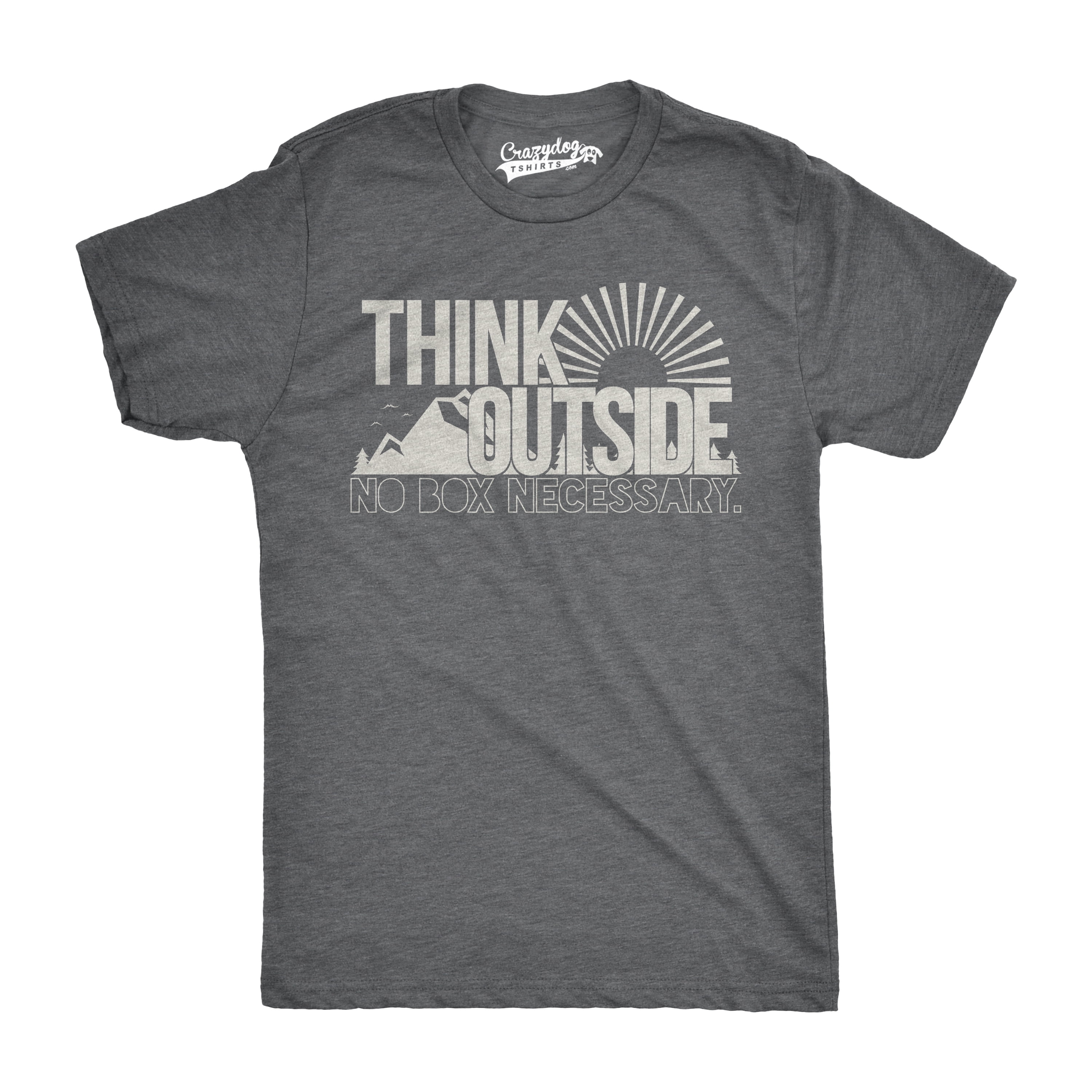 Mens Think Outside Funny No Box Necessary Hiking Camping Vintage Graphic T Shirt Dark Heather Grey L Graphic Tees Walmart Com